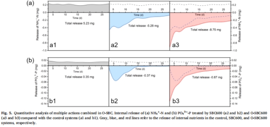 研究意義:證實(shí)O-SBC通過物理阻隔、吸附與ONB釋放三重作用逆轉(zhuǎn)沉積物營養(yǎng)釋放。