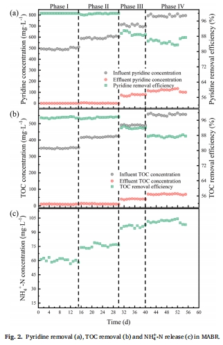 數據:吡啶負荷0.8 kg·m?3·d?1時,去除率85.31%,TOC去除率87.53%。