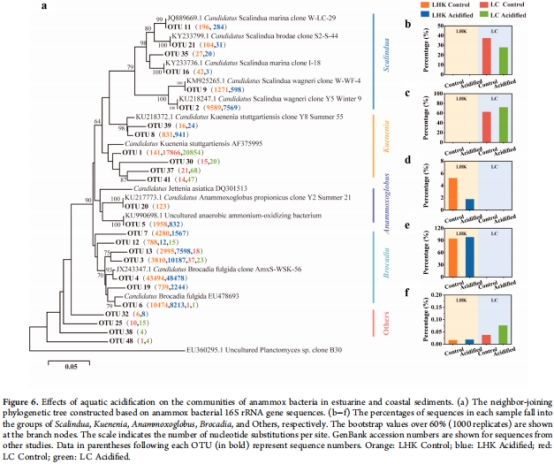 Anammox菌16S rRNA基因豐度穩定(LC站點增13%)。