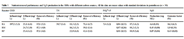 1. N?O排放與營養(yǎng)物去除(表1)