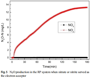 RP系統(tǒng)中,NO??作為電子受體時N?O產(chǎn)量(1.8 mg N/L)高于NO??(0.5 mg N/L)(圖5)。