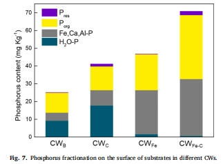 CWFe-C中穩定態磷(Fe,Ca,Al-P + Porg)占比96.2%,對照組H?O-P為主(不穩定)。
