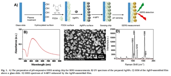 修飾4-MPY作為pH響應分子,通過Ag-S鍵固定(圖1D)。