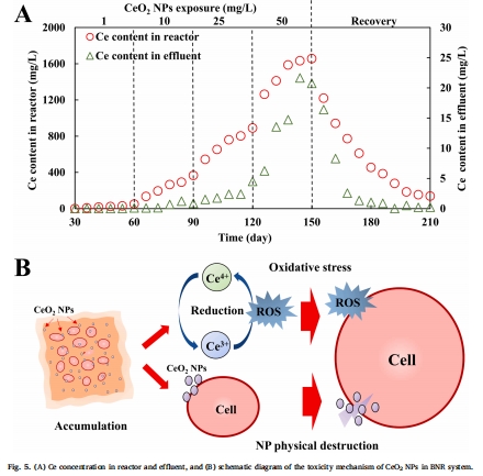 核心目標:探究CeO? NPs慢性暴露對污水生物脫氮(BNR)過程的影響,包括氮去除效率、N?O排放(一種強效溫室氣體),以及系統的自我恢復潛力。
