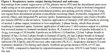 論文研究了強效阿片類藥物芬太尼對背外側腦橋(dorsolateral pons)呼吸神經元活動的抑制作用及其在呼吸抑制中的作用: