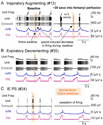 27%神經元(多為呼氣類)參與吞咽協調,40%在芬太尼呼吸暫停中沉默。