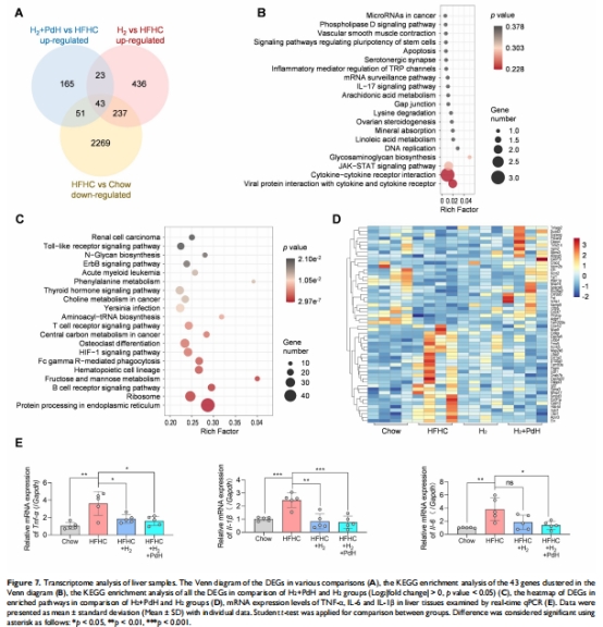 轉(zhuǎn)錄組:Pd+H?組激活脂代謝通路(PPARα/FXR),抑制炎癥通路(JAK-STAT)(圖7C-D)。