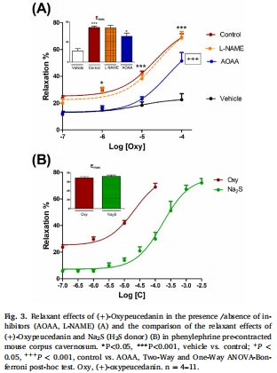 數(shù)據(jù)來源:圖2A(Pp-CE + AOAA/L-NAME)、圖3A((+)-oxypeucedanin + AOAA)。