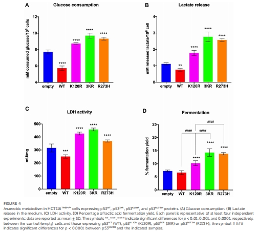 糖酵解:p53K120R乳酸發酵率(35%)低于R273H(55%),但高于p53WT(20%)(圖4D)。