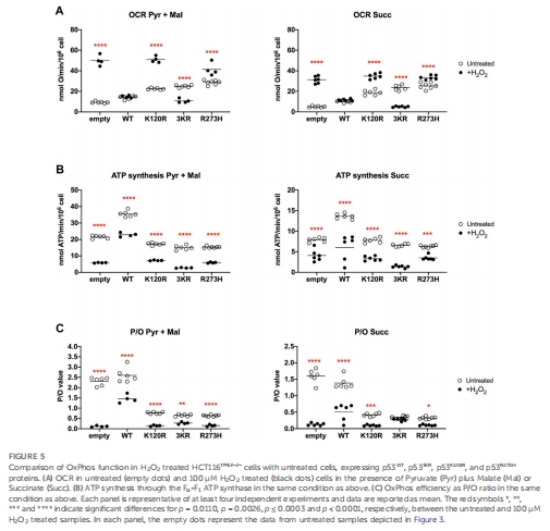 P/O比降至0.8(p53WT為2.5),證明 突變導致線粒體能量泄漏。