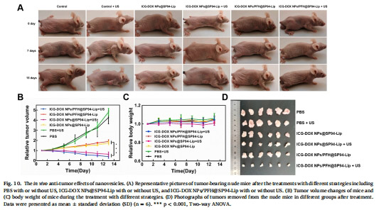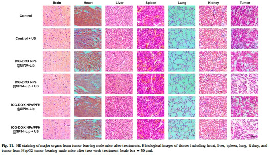ICG-DOX NPs/PFH@SP94-Lip + US組腫瘤體積抑制率90.52%(vs. PBS組)。