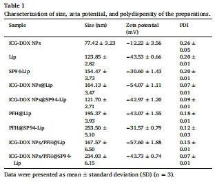 復合納米囊泡:將ICG-DOX NPs裝載至PFH@SP94-Lip中(粒徑234nm,表1)。