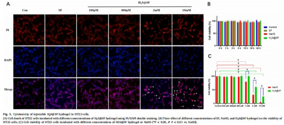 SF水凝膠負(fù)載NaHS(H?S供體),濃度優(yōu)化(0.2-2 wt%)。