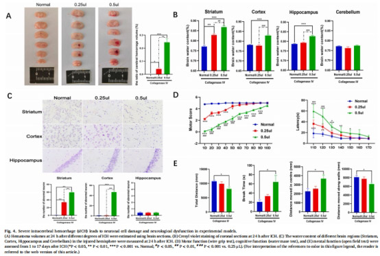 減輕腦水腫(↓40%,圖6C)、減少血腫體積(↓35%,圖4C)、改善神經(jīng)功能(運動/認(rèn)知評分↑50%,圖6D-E)。