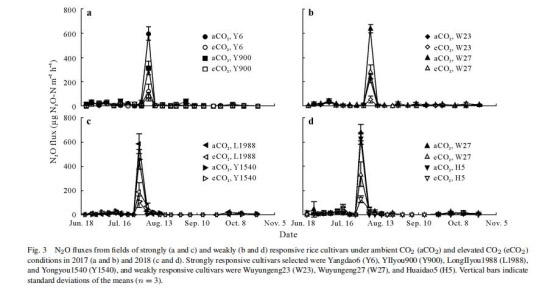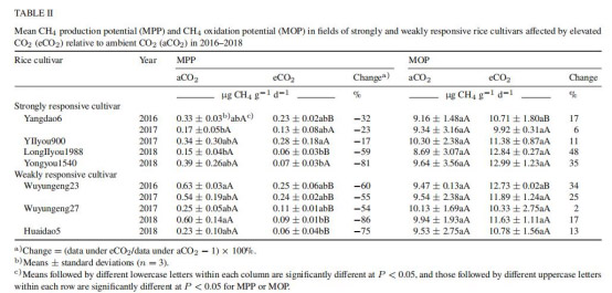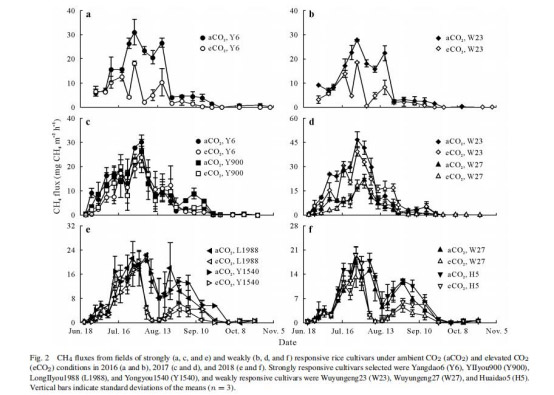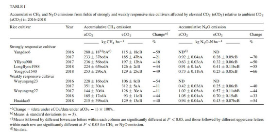 大氣中 CO2 升高可減少中國亞熱帶稻田中兩種對比水稻品種的 CH4 和 N2O 排放