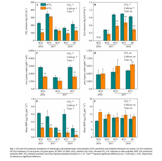 標(biāo)題:Elevated CO? does not necessarily enhance greenhouse gas emissions from rice paddies
