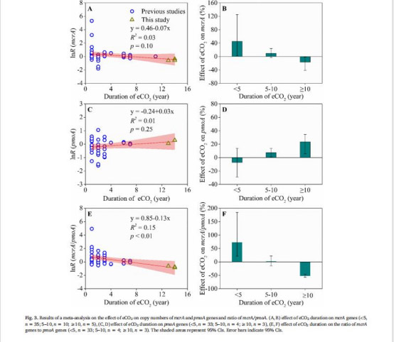 意義:全球數(shù)據(jù)驗(yàn)證“時(shí)間依賴性效應(yīng)”,即長期eCO?通過減少碳底物供應(yīng)和改變微生物群落平衡降低溫室氣體排放。