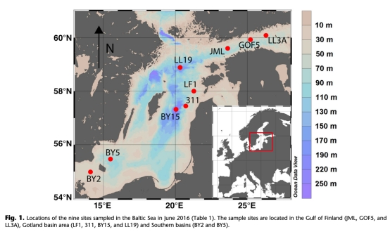 1. 選取波羅的海9個代表性站位(圖1),覆蓋梯度氧狀態(季節性缺氧→永久硫化)