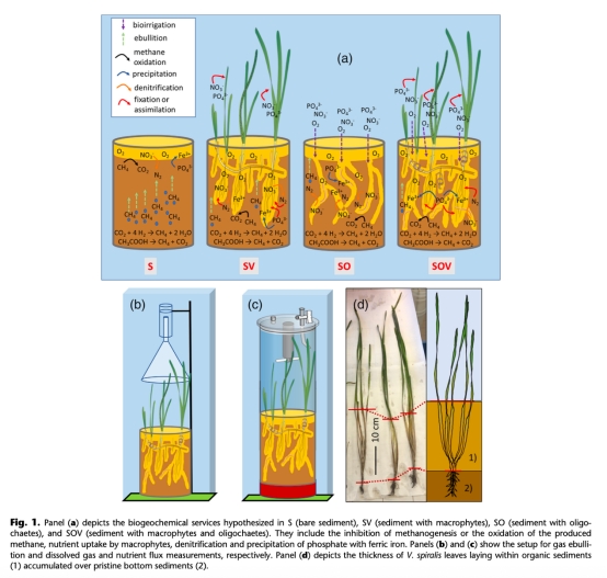 摘要指出,有機沉積物是溫室氣體(如甲烷CH4)和營養鹽的釋放熱點。通過實驗室微宇宙實驗,研究發現沉水植被(Vallisneria spiralis)和寡毛類蠕蟲(Sparganophilus tamesis)的共存可顯著降低甲烷排放并增強營養鹽去除。在12天的實驗中,與裸露沉積物相比,植被單獨使甲烷冒泡排放減少67%,蠕蟲單獨減少88%,二者共存減少97%。蠕蟲促進脫氮作用(增加200 mmol N m?2)和硝酸鹽消耗,而植被減少氮損失約65 mmol N m?2。所有處理均表現為磷酸鹽匯。