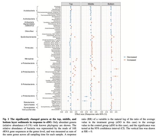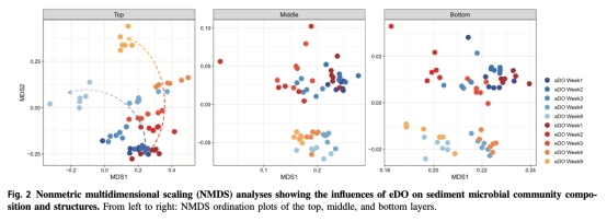 ? 數據:NMDS顯示eDO顯著改變群落結構(Adonis檢驗p<0.05,表1);δ-變形菌(含SRB)在中層增加