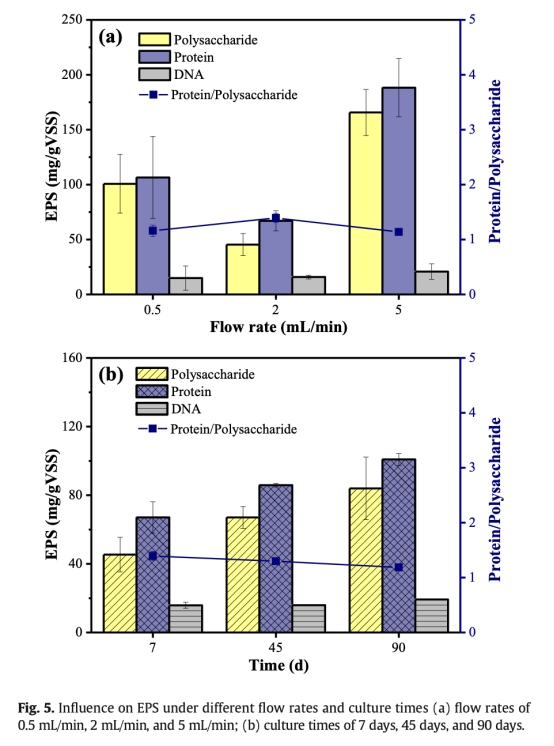 ? 數據:7天培養時蛋白質/多糖比1.4(90天降至1.2),多糖含量最低(45.4 mg/g)