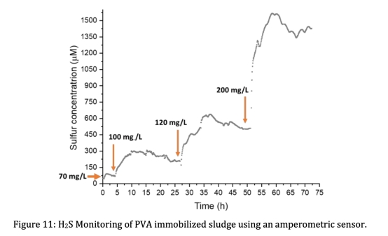 4. H?S監測平臺應用:采用Unisense安培H?S微傳感器檢測PVA固定化污泥的H?S產量(圖11),驗證方法的監測可行性。