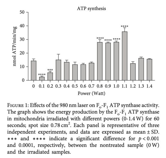 ? 數據:0.1W抑制ATP合成(↓60%),0.8W顯著提升(↑40%)。