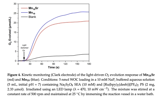 ? 驗(yàn)證催化本質(zhì):Mn18Sr的O?產(chǎn)量與電荷量匹配(TON=21.6),證實(shí)水氧化路徑主導(dǎo),排除配體氧化等副反應(yīng)。