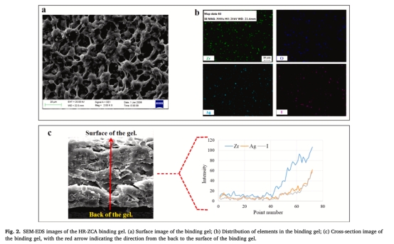 ? 通過SEM-EDS表征結合膠表面元素分布(圖2),證實Zr、Ag、I和O元素均勻分布。