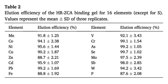 ? Se洗脫效率最高(99.7%),P最低(87.6%);As、Sb、V洗脫效率(>92%)顯著高于文獻報道的ZrO-CA凝膠(55-76%)。