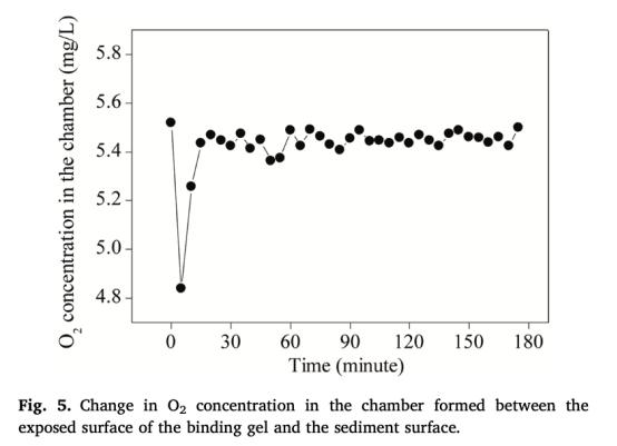 ? 驗證氣體滲透性:通過實時監測封閉腔內O?濃度的動態恢復(5分鐘內從4.8 mg/L升至5.4 mg/L),直接證明結合膠允許氣體自由穿透,確?;旌蟼鞲衅髦蠴?平面光極能準確反映沉積物中的氧分布。