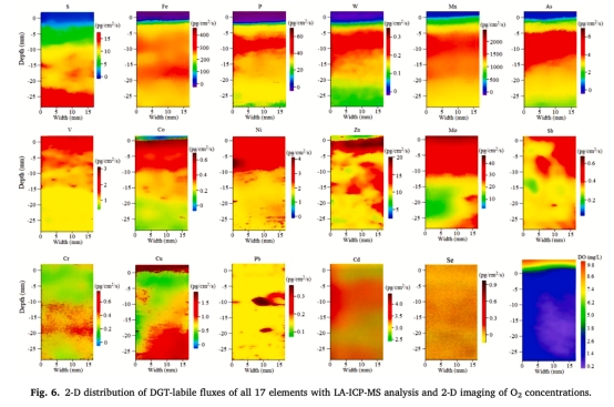 1. 技術創新:成功開發HR-ZCA DGT技術,首次實現硫化物、金屬陽離子和含氧陰離子(共17種元素)的同步高分辨率二維成像(分辨率188 μm),LA-ICP-MS定量精密度高(RSD<12%)。