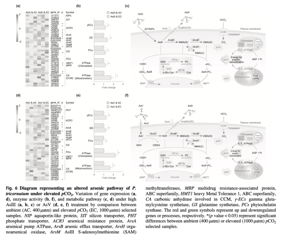 ? 數據:高pCO?下砷外排基因(ACR3、ArsB)和GSH合成酶(γ-ECs)上調,砷螯合能力增強。