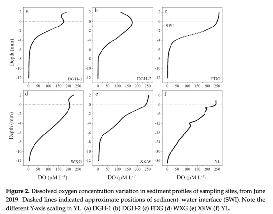 ? DO濃度(圖2):測量溶解氧在沉積物中的垂直分布。研究意義:揭示藻華分解導(dǎo)致的缺氧程度(如高藻站點DO滲透深度僅8-12.7mm),為理解硝化受限提供關(guān)鍵環(huán)境背景。