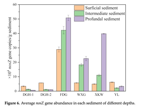 ? nosZ基因豐度(圖6):qPCR定量反硝化菌基因。研究意義:量化反硝化潛力(如FDG站點豐度隨深度增加),揭示藻華對微生物氮去除能力的抑制。