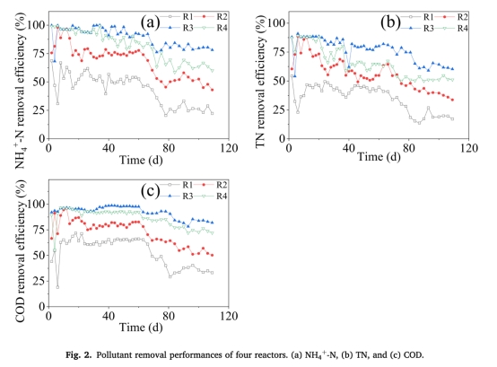 ? 數據:COD、NH4+-N、TN去除率動態變化