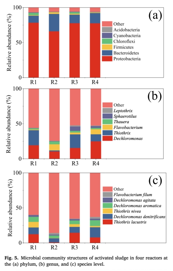 2. 減排機制關聯:結合批式實驗(圖3b),區分硝化/反硝化過程的N2O貢獻,證明45 mT SMF對硝化過程N2O減排效果最顯著(因抑制AOB的硝化菌反硝化途徑)。