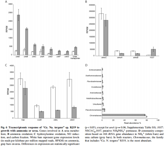 結果:尿素代謝基因(ure)表達上調,但生長率僅為氨氧化的50%。