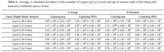 最高豐度:2–5 mm層(10? copies/g),如Layer 3達3.12×10? copies/g。