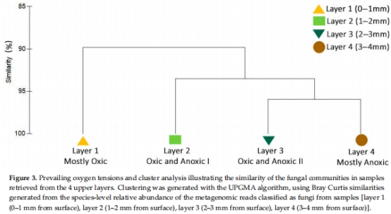 意義:真菌群落結構穩定(層間相似性>90%),支持其跨氧梯度生存能力。
