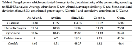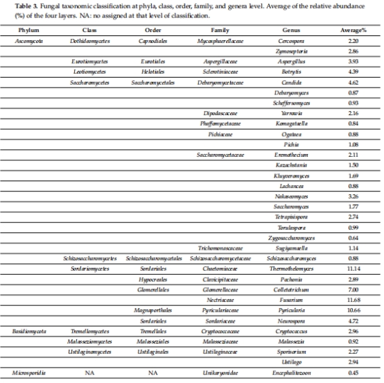 功能類群:腐生菌(如 Saccharomycetales)、病原菌(如 Fusarium)、反硝化菌(如 Aspergillus)(表4)。
