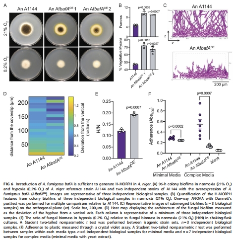 跨物種效應:將煙曲霉bafA導入黑曲霉(A. niger)可重現H-MORPH表型,增強缺氧生長能力(圖6A-F)。