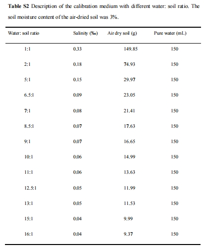 數(shù)據(jù)來源:13種水:土比土壤溶液的校準(zhǔn)曲線(表S2),二次擬合確定最佳比例(圖5)。