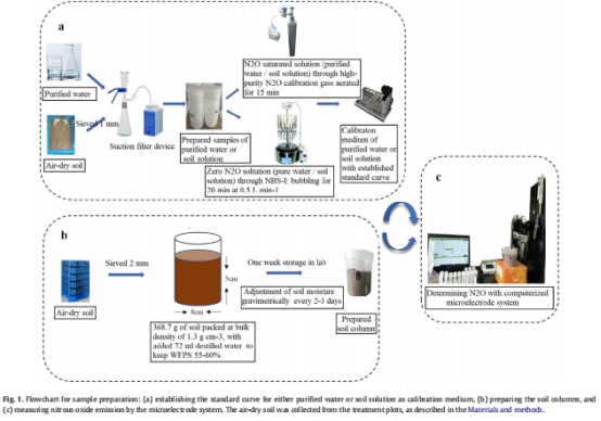 制備13種水:土比(1:1至16:1)的土壤溶液,建立N?O濃度-電流信號校準(zhǔn)曲線(表S2)。