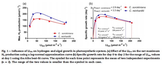 1. H?產量與光照強度的非線性關系(圖1a, 圖2a)