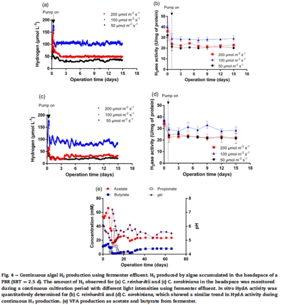 從富含醋酸鹽的廢水中連續生產光合生物氫:光照強度的影響
