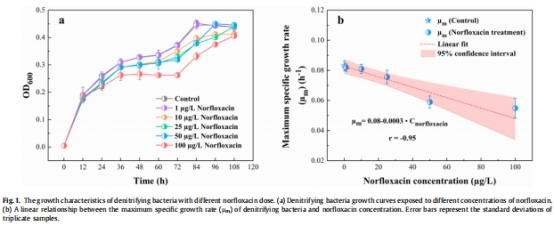 意義:證實諾氟沙星直接損害反硝化菌增殖能力,為反硝化效率下降提供生理學依據。