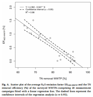 創新估算模型:基于TN去除率的線性回歸模型(EF= -0.033×TN<sub>removal</sub> + 3.07)比IPCC默認因子精準86%,已納入奧地利國家溫室氣體清單。