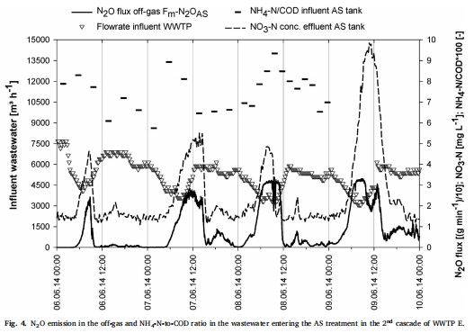 NH??/COD比升高時(如早高峰),反硝化抑制導致N?O排放激增(圖4)。