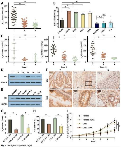 證實(shí)CBS抑制劑(AOAA)降低H?S后抑制CRC生長(zhǎng)(圖1G-I),反向驗(yàn)證H?S的促癌作用;